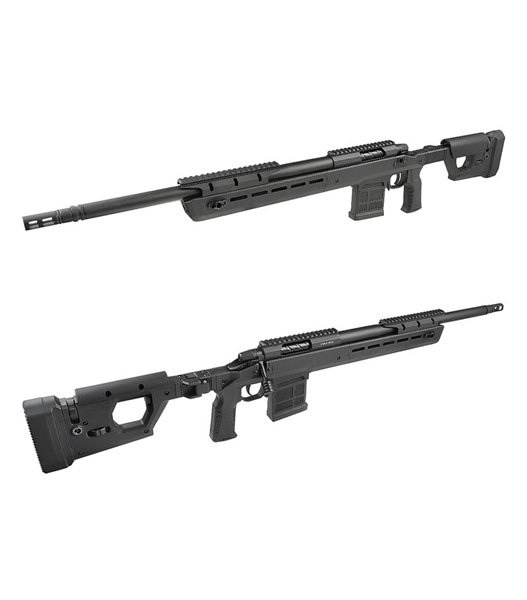 タイプのシャーシが組み込まれたボルトアクションスナイパーライフル。 ボルトリテーナープレートの入れ替えで容易に換装可能なライト/レフトボルトハンドル、リバーシブルチークライザー/フォールディングストックヒンジなど、 エルゴノミクス・フルアンビデクストラスデザインが最大限に取り入れられています。 これらの実物の構造に極力準拠すると同時に、全体的なスタイリングのリアリティーにも配慮され、ストック部の刻印も再現しています。内部パーツには、標準的なガスガン用ホップパッキン、インナーバレルを使用しており、 個々の好みに応じたオリジナルカスタムを行うことが可能です。 また、実射性や利便性向上のため、HOP調整はフォアエンド下部のダイヤルで簡単に行うことができる設計となっています。【エルゴノミクス・アンビデクストラス】最も大きな特徴は利き手を選ばないアンビデザインとなっている点。 特にボルトハンドルは簡単な手順で容易に左右の入れ替えができ、ストックの折り畳み方向の変更も可能です。