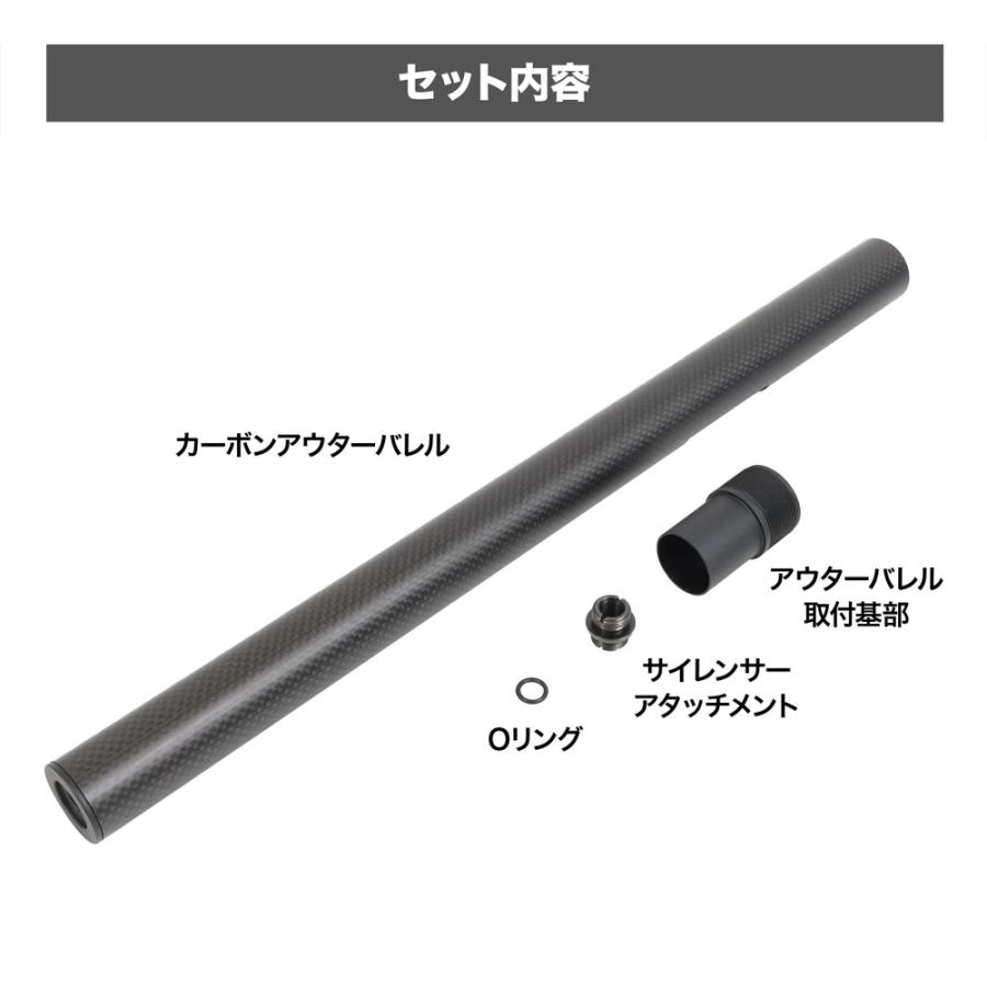 東京マルイ ボルトアクションエアーライフル VSR-10シリーズに装着可能なアウターバレルです。全長はGスペックの純正長そのままに、メインマテリアルをカーボンで製作。他とは違う上質な存在感を楽しめます。表面は艶消しに仕上げており、光の反射を防ぎステルス性を高めます。